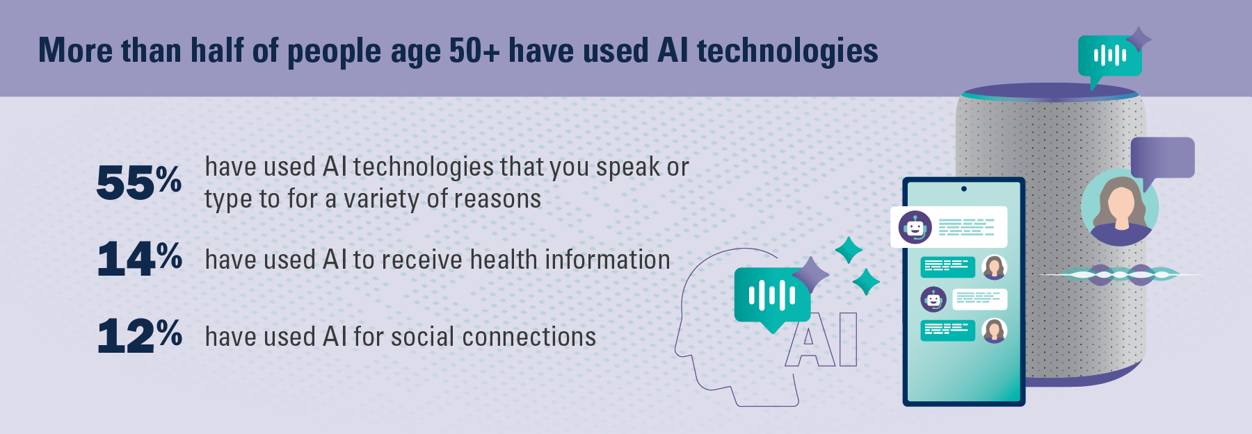 “Overall, 35% of people age 50 and older reported interest in using AI in their day-to-day lives. Older adults who rated their physical health as fair or poor were less likely than those who rated their physical health as good to excellent to express interest in using AI in their day-to-day lives (29% fair or poor physical health vs. 36% good to excellent physical health).” READ: https://fluence-media.co/3H2UsDo