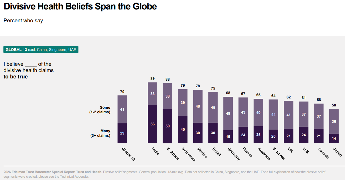 MISINFORMATION: Via UofM CIDRAP, VERBATIM: “About a quarter of people worldwide say they believe that raw milk is healthier than pasteurized milk, that use of acetaminophen during pregnancy causes autism, and that vaccines are used for population control. These are a few of the harmful health claims that were surveyed in the 5th annual Edelman Trust Barometer Special Report: Trust and Health . . . The Trust Barometer queried people across 16 countries, including the United States, Canada, and Mexico: Roughly 1,000 people per country were surveyed, for a total of 16,009 respondents.” READ: https://fluence-media.co/4sXS2rP