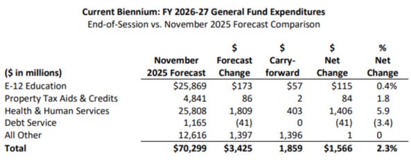 AND: HHS expenditures have the biggest net change from the end of the last legislative session: