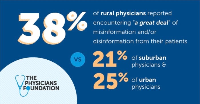 MISINFORMATION: Via NBC News, VERBATIM: “A survey of doctors released Wednesday showed how pervasive medical falsehoods have become — not only online, but also within the walls of medical exam rooms where doctors and patients talk. The survey from the Physicians Foundation, a nonprofit research group, found that 61% of doctors said they encountered patients influenced by misinformation or disinformation a moderate amount or a great deal of the time over the past year.” READ: https://fluence-media.co/4lK21xh