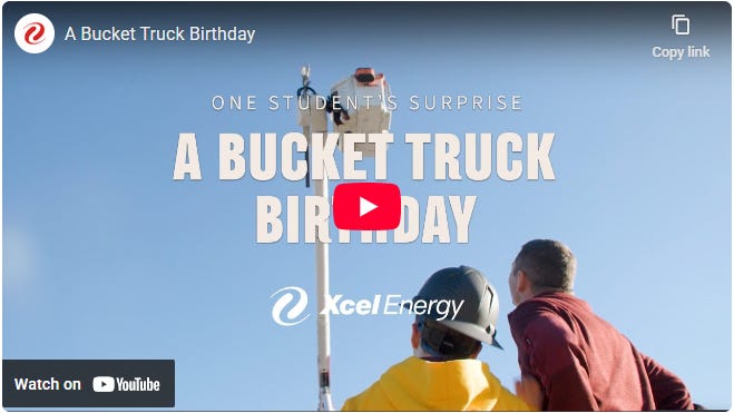 BUCKET TRUCK: Via Xcel, VERBATIM: “On a crisp autumn morning in Waconia, Minnesota, Laketown Elementary buzzed with excitement as fifth-grader Grant Scotting kept his eyes trained on the parking lot. A birthday surprise for Scotting was in the works — and soon it rolled up: a shiny Xcel Energy bucket truck. Scotting, who has special needs and is nonverbal, is known for his love of Xcel Energy. His enthusiasm for the local energy company ranges from reporting outages on his family’s iPad to eagerly opening each monthly bill.” READ/WATCH: https://fluence-media.co/4oq7uei (SPONSORED: Xcel Energy)