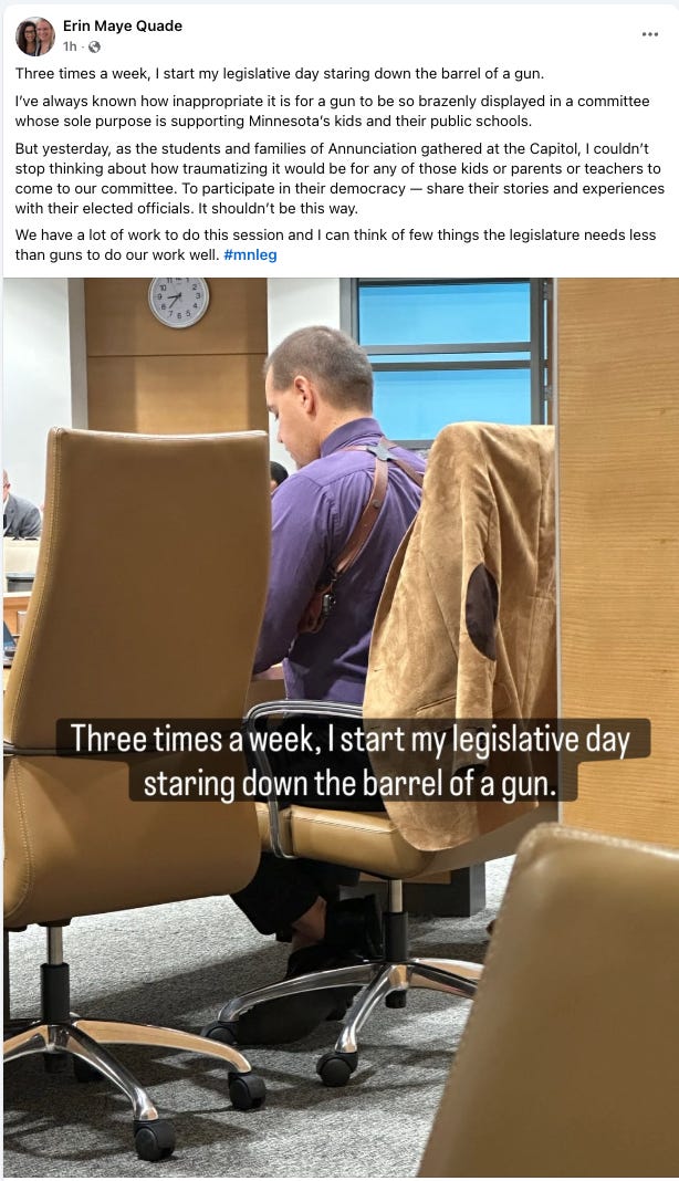 SD42: Via CCX Media, VERBATIM: “Sen. Bonnie Westlin, DFL-Plymouth, told CCX News in Newsmakers that she will advocate for housing affordability, Plymouth bonding projects and state Capitol security.” QUOTE: “I actually will be dropping a bill that would completely ban guns on the Capitol complex except for our law enforcement officers who were there on official business,” said Westlin. “I think it’s just the environment that we live in today. We want to make sure that everybody who comes to visit our Capitol, including thousands of school kids, feel comfortable there.” WATCH: https://fluence-media.co/4tZI8aQ