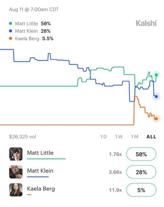 MORE: via Matt Little, DFL candidate for CD2, LITTLE: “I thought this might be a good time to say that I do not have a Kalshi account.” TWEET: https://fluence-media.co/4vFuDhb