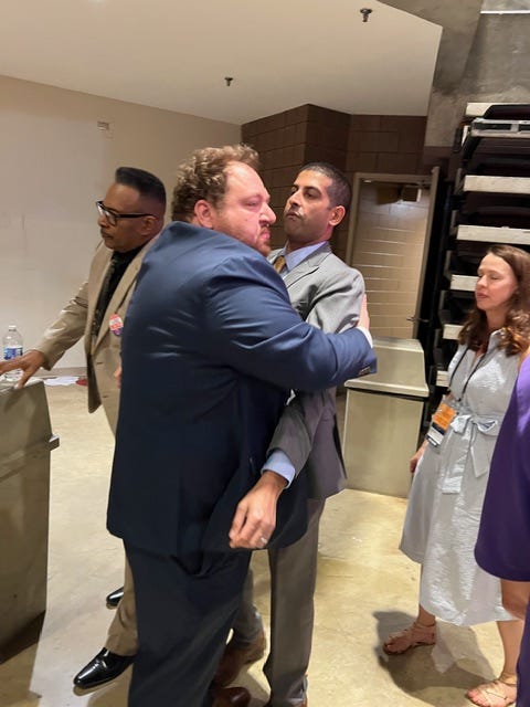 In 2022, there was a chance that Dr. Neal Shah or then Mayor Mike Murphy may have been the Republican nominee for Governor. Ultimately, Dr. Scott Jensen outmaneuvered them, but proved to be an undisciplined candidate without appeal to independents. This photo represents a moment from the 2022 GOP convention that illustrates the awkwardness for Republicans in dealing with “liberty” candidates.
