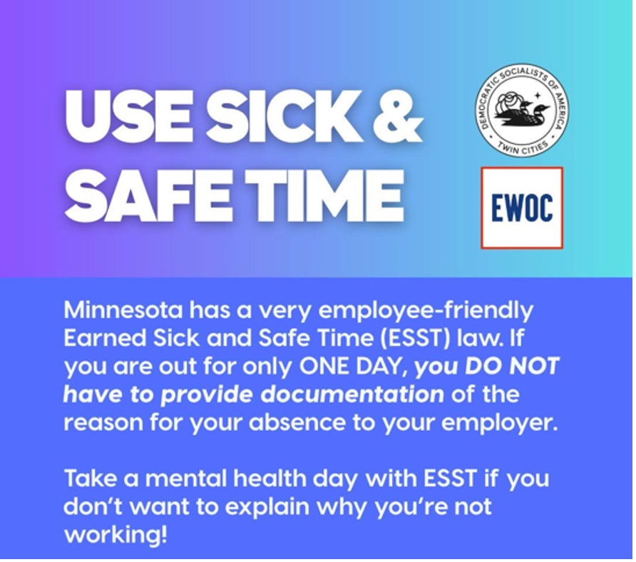 A post about Earned Safe and Sick Time from the DSA: