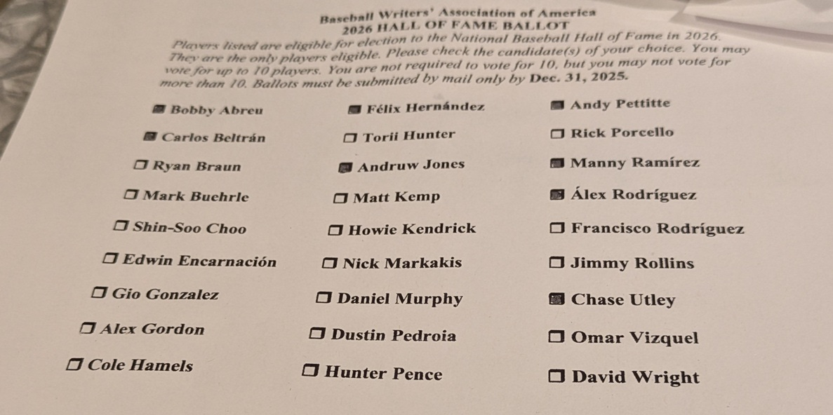 MY HALL OF FAME BALLOT: Results of baseball’s Hall of Fame balloting will be announced Tuesday. I’ve been a voter since in 2019, when I reached the required 10 consecutive years of membership in the Baseball Writers Association of America. My ballot is posted above. I added Felix Hernandez and Chase Utley this season to the six players I voted for last year. (You can vote for a maximum of 10.) I’m pretty certain Carlos Beltran will be elected this year and that Andruw Jones will either make it or miss by a handful of votes in his ninth year of the 10 that a player can be on the ballot. DRUG GUYS: Yes, Alex Rodriguez and Manny Ramirez were suspended for drug violations during their careers. That was a deal-breaker for me until Bud Selig, the commissioner who oversaw the “steroid era,” was inducted. You admit management, then you have to admit the workers. ADDING GUYS: People sometimes ask how can a player get added to your ballot? Did he suddenly become a hall of Famer? Valid questions. When you talk to experts and reassess data every year, opinions can change.