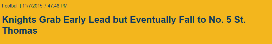 AND FINALLY: Carleton’s lopsided baseball loss reminded me of the school’s 2015 football loss to St. Thomas, when they took an early 3-0 lead — and ended up losing 80-3. The Knights’ sports information staff handled the loss wonderfully, making sure to point out the early lead, that the Tommies went for a two-point conversion after their first touchdown and deferring mention of the final score: